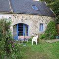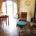 > Gemütlicher Wohn- und Essraum mit großzügiger Öffnung zu Hof und Terrasse