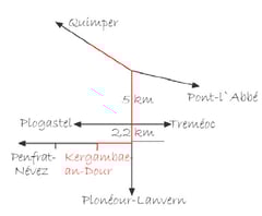 In den Kreisverkehren immer Richtung Pont-L'Abbé halten, auf der D 785 aus Quimper raus, 5 km bis zur Ausfahrt Plonéour-Lanvern.